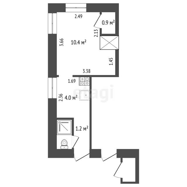 Студия, 17.5м², 2/2 этаж