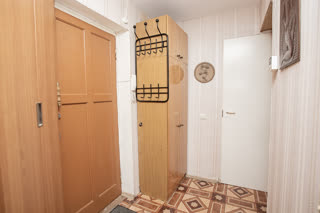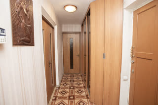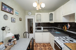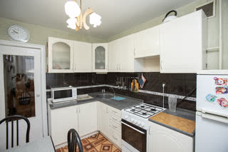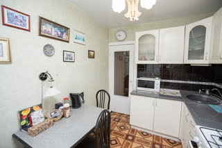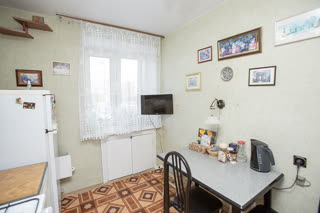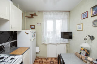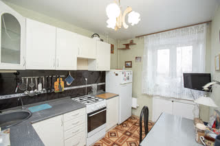 Просторная кухня площадью 8 квадратных метров оборудована необходимой встроенной техникой, включая холодильник и газовую плиту. Окна выходят на солнечную сторону, наполняя пространство естественным светом в течение всего дня.