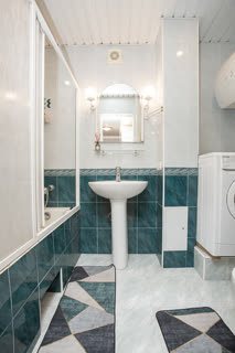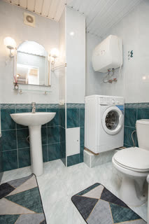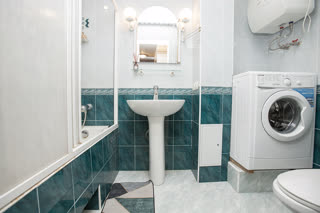 Санузел совмещенный, оснащен современной сантехникой и стиральной машиной. Дополнительное полезное пространство предоставляет утепленная лоджия, которую можно использовать как зону отдыха или для хранения.