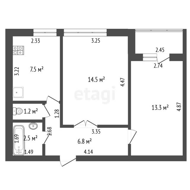 - Общая площадь45.8 м²
