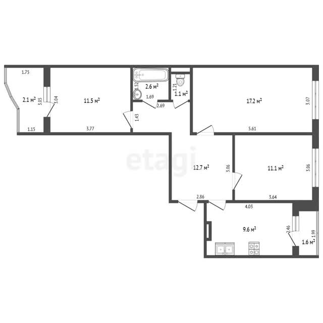 - Площадь кухни9.6 м²