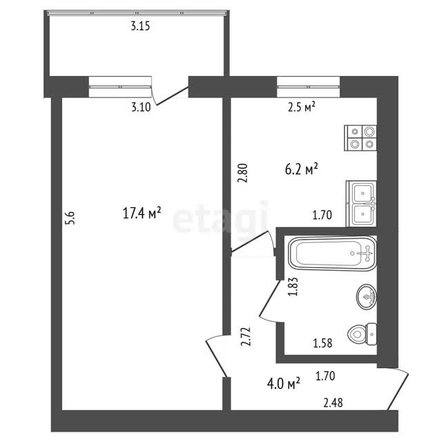 - Площадь кухни6.2 м²